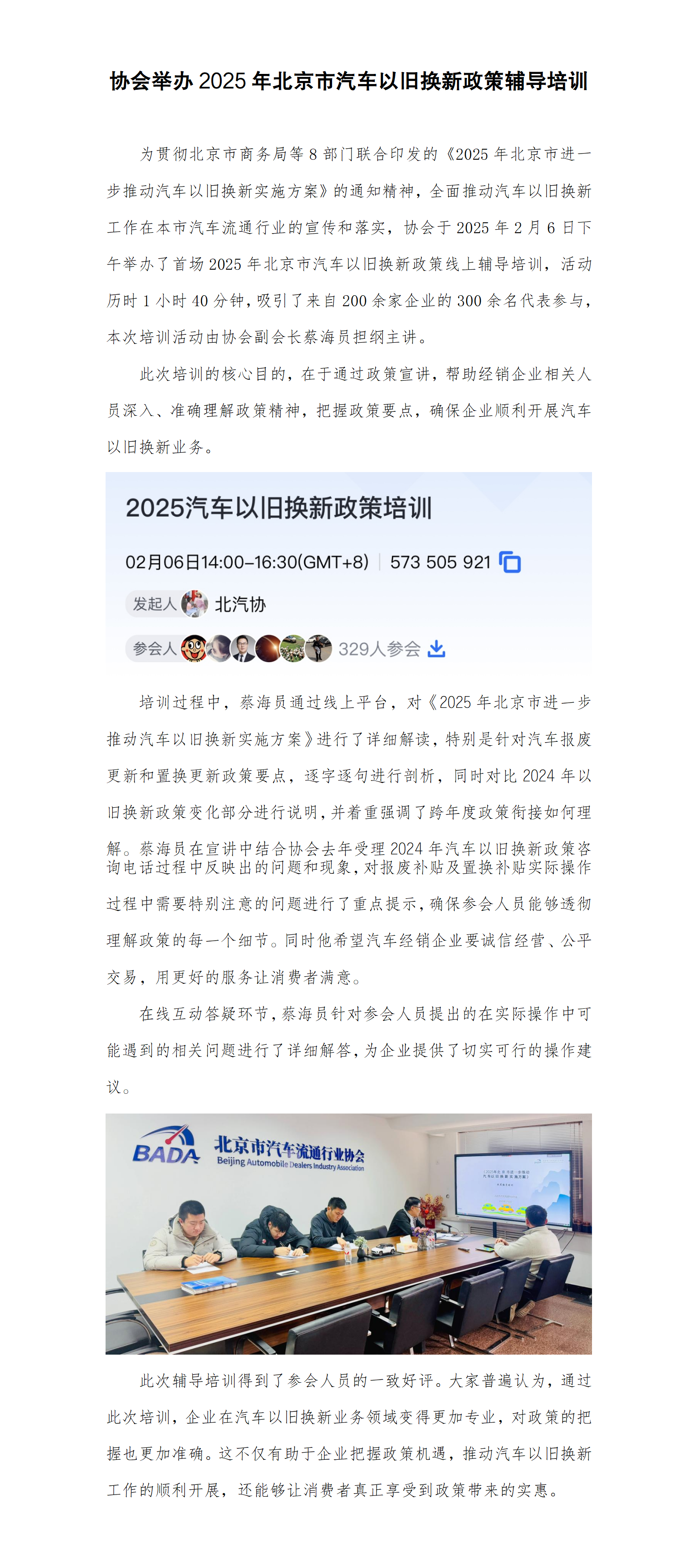 协会举办2025年北京市汽车以旧换新政策辅导培训