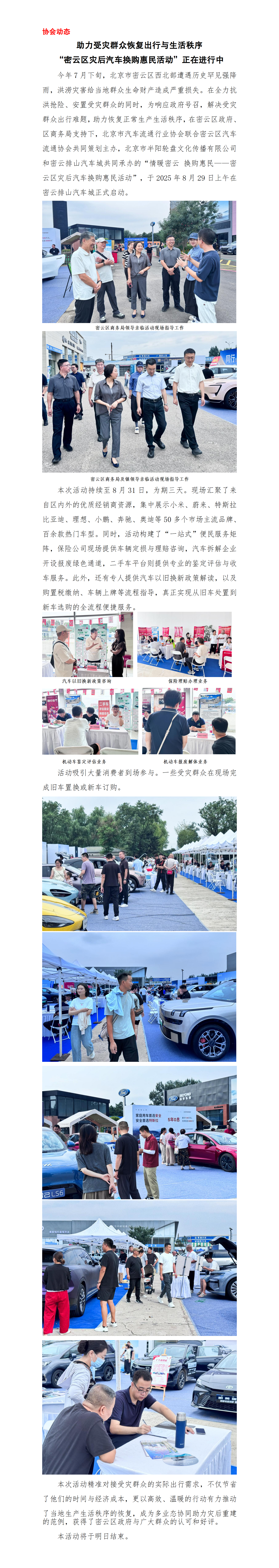 助力受灾群众恢复出行与生活秩序“密云区灾后汽车换购惠民活动”正在进行中
