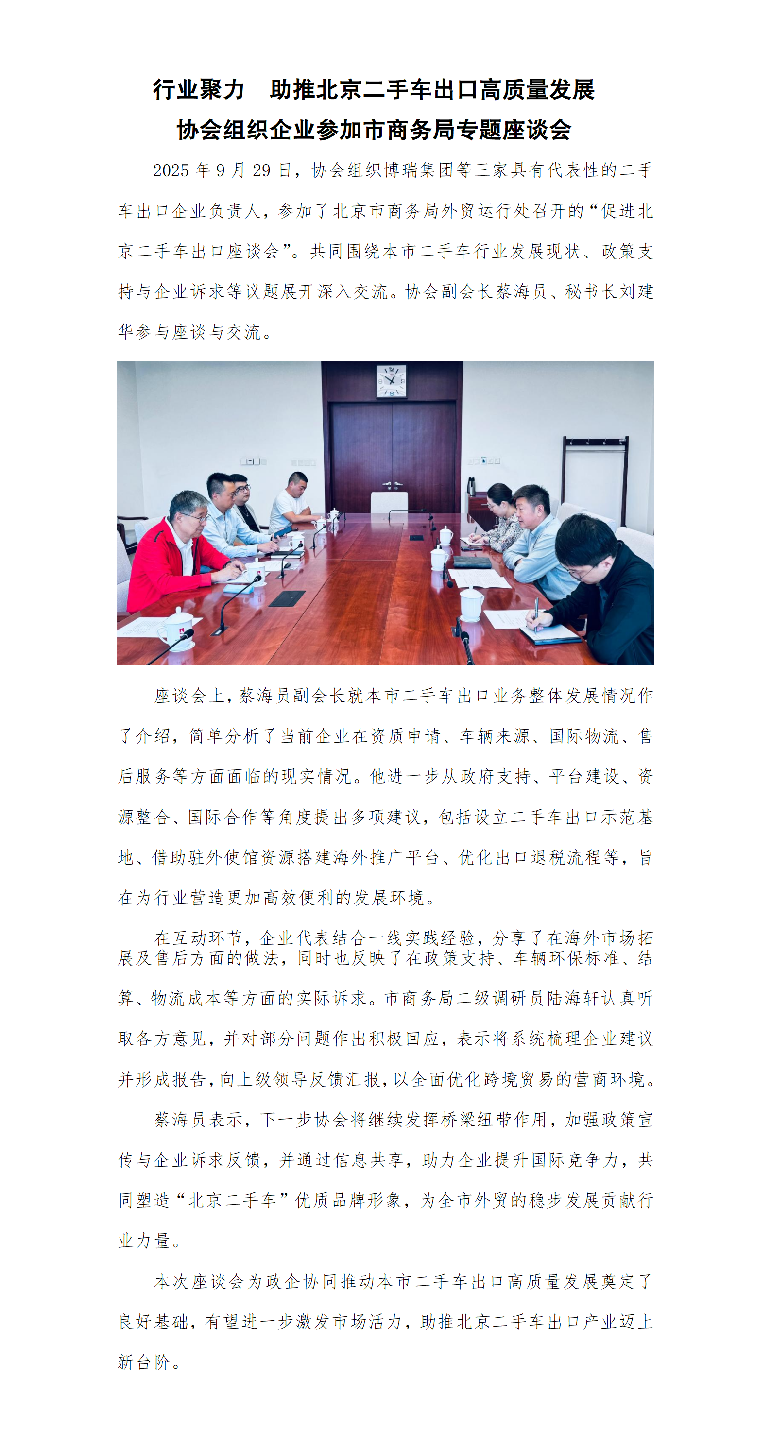 行业聚力 助推北京二手车出口高质量发展 协会组织企业参加市商务局专题座谈会