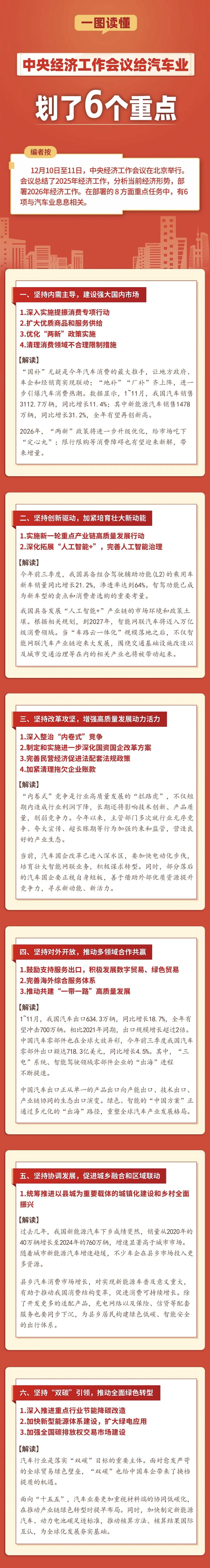 一图读懂 | 中央经济工作会议给汽车业划了6个重点