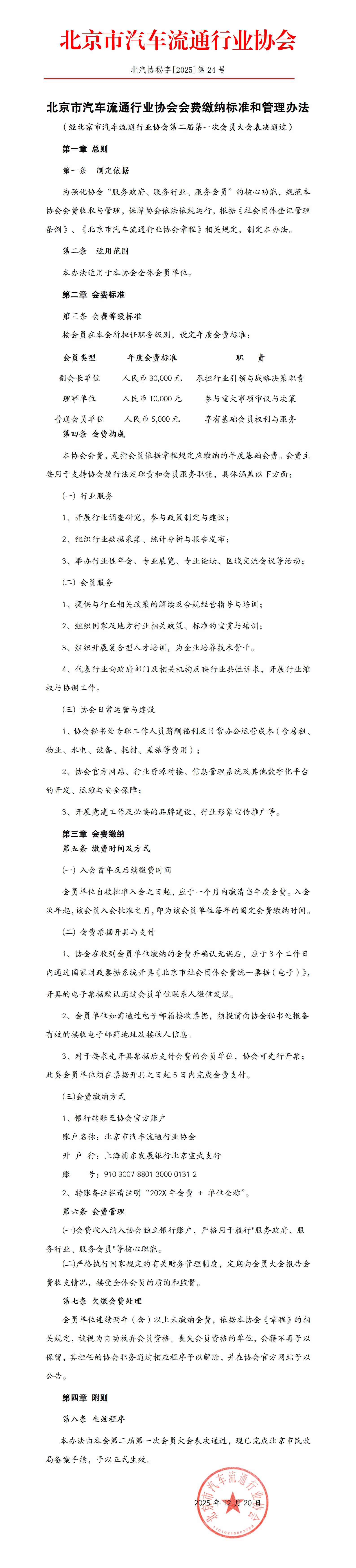北京市汽车流通行业协会会费缴纳标准和管理办法 (经北京市汽车流通行业协会第二届第一次会员大会表决通过)